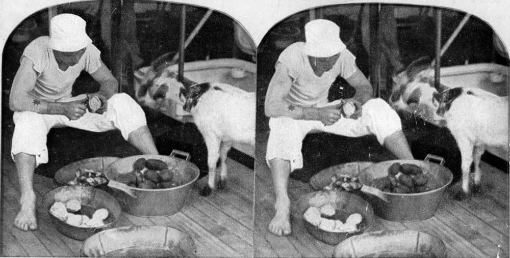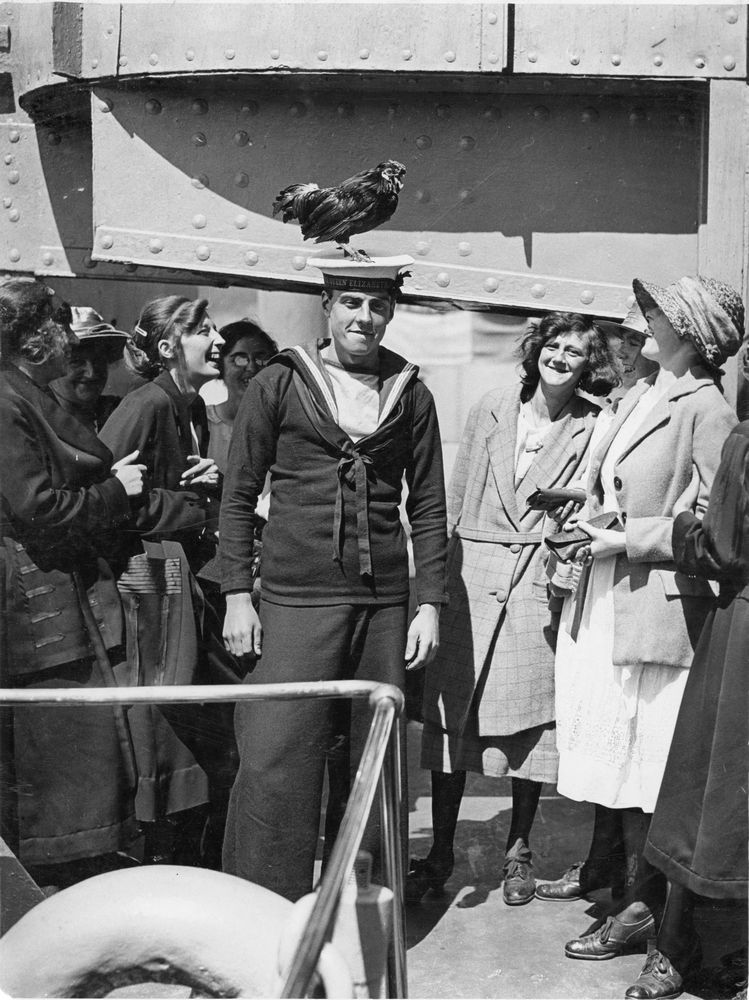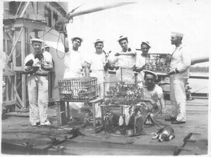 German torpedo boat. In the middle of the center group is a stuffed polar bear, the visitors would not be so friendly with a real bear. In the 1920s, H.M.S. Ajax had a real bear called Trotsky as a mascot.